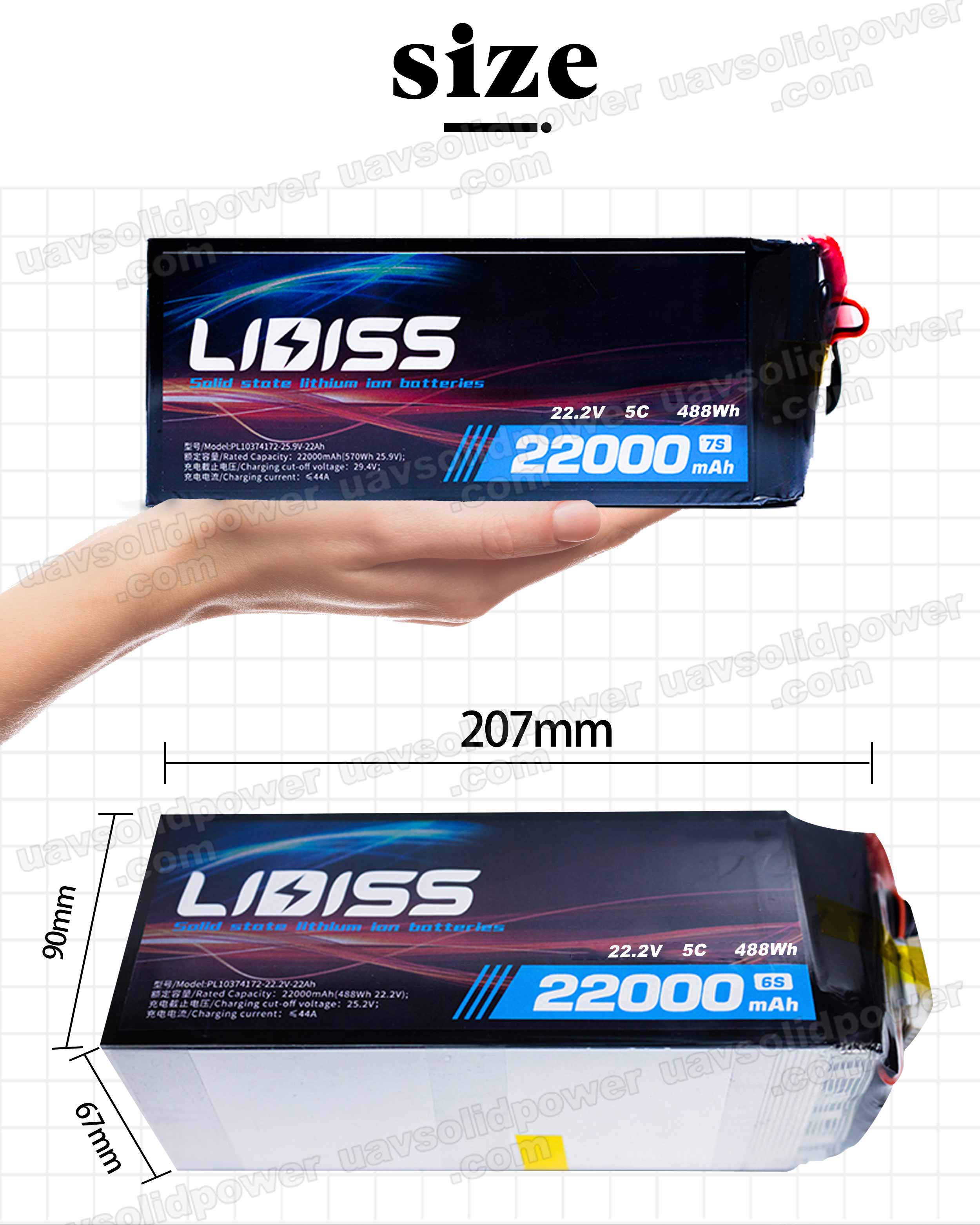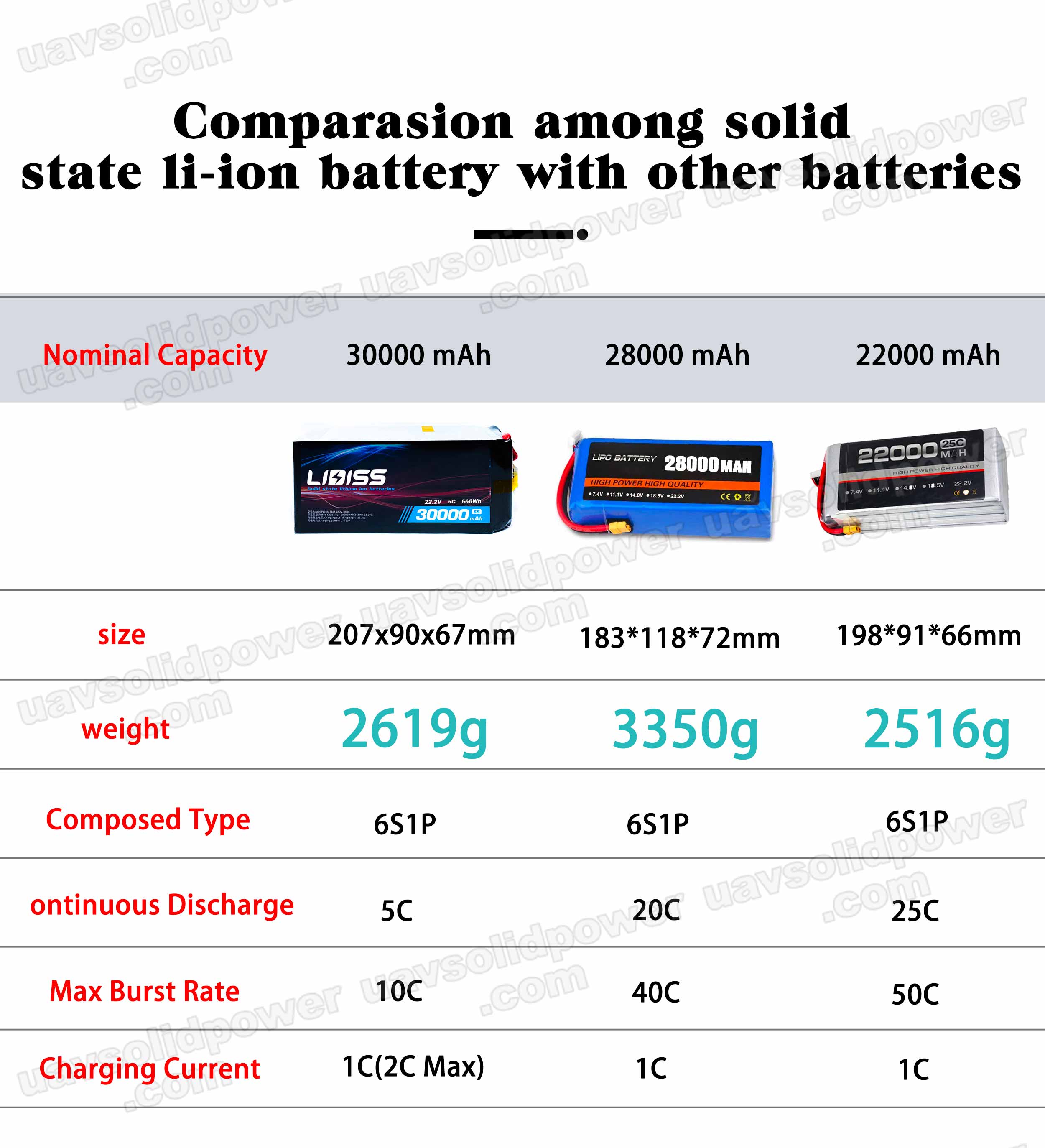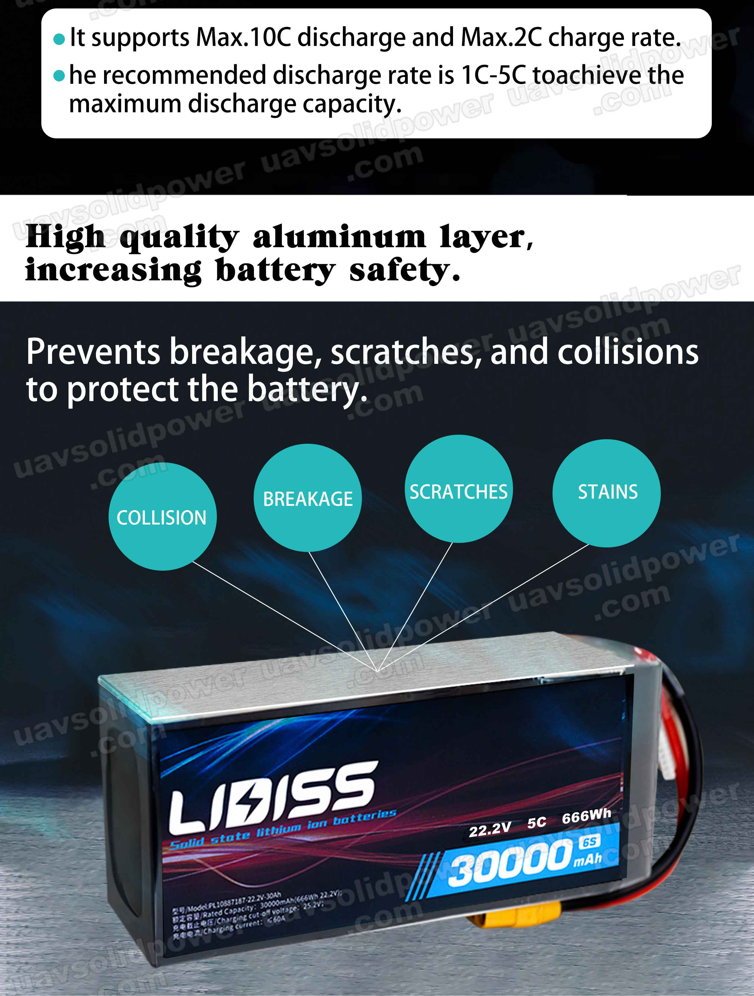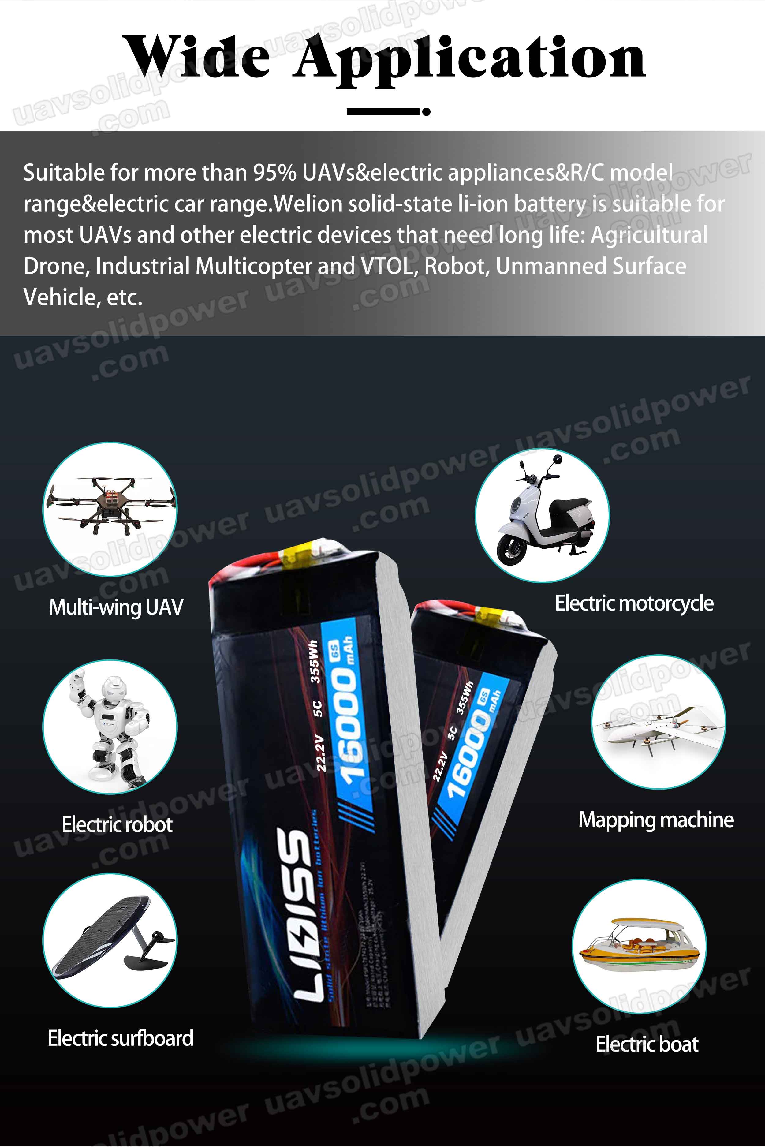 Solid state lithium battery has low failure rate, multiple flush and discharge, voltage stability, for example, 6S solid state lithium ion battery pack 16000mAh, flush and discharge for about 2000-2500 times up and down.